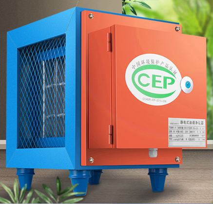 本產(chǎn)品采用機(jī)械凈化和靜電凈化雙重作用。含煙廢氣被風(fēng)機(jī)吸入管道后,首先進(jìn)入初級(jí)裝置--凈化整流室,采用力慣性凈化技術(shù),室內(nèi)的特殊結(jié)構(gòu)逐步對(duì)大顆粒徑污染物進(jìn)行物理分解,并且均衡整流。分離出的大顆粒油滴在自身重力的作用下流入油槽排出。除余的小顆粒污染物進(jìn)入初級(jí)裝置--高壓靜電場(chǎng),靜電場(chǎng)內(nèi)部分兩級(jí),第一級(jí)為電離器,強(qiáng)電場(chǎng)使微粒帶電,成為帶電微粒,這些帶電微粒達(dá)到第二級(jí)集塵器后立即被收集電集吸附,且部分碳化,同時(shí)高壓靜電場(chǎng)有效的降解有害成份,起到消毒,除味作用。最后通過(guò)濾網(wǎng)格柵,潔凈的空氣排出室外。
