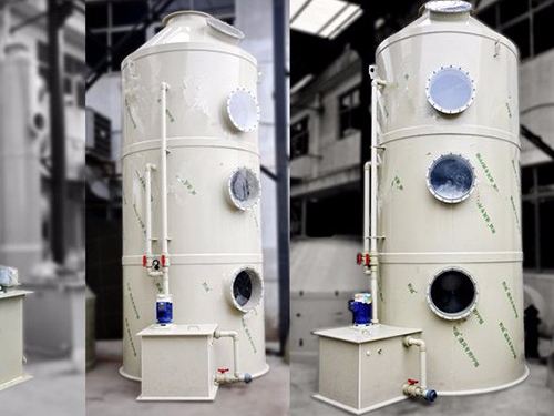 通過風管將酸霧廢氣引入凈化塔。通過填料層后,廢氣和氫化鈉吸收劑與氣體和液體充分接觸,以吸收和中和氣體。凈化后,酸霧廢氣經(jīng)煙塵板脫水除去,再由風機排放到大氣中。在塔底用水泵加壓后,將吸收劑噴在塔頂噴淋而下,然后再循環(huán)到塔底。凈化后的酸霧廢氣符合國家排放標準。